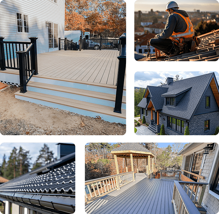 Whether you're looking to replace an old roof, upgrade your siding, or create an outdoor deck retreat, our expert team is here to bring your vision to life with professionalism and precision.